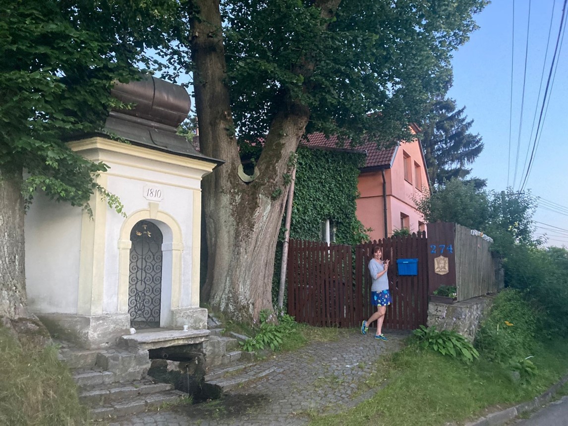 Vedle našeho domu stojí kaplička svatého Jána, postavená v roce 1810. Pramen pitné vody je ukrytý ve skále na našem dvorku. Cítím se být takovou strážkyní pramene a celé kapličky. Zhruba před třemi roky nám zub času poničil původní červená železné vrátka. Haltýř se dočkal nádherných kovaných vrátek se skleněnými okénky, jde o autorskou práci Vlastimila Pavelky z Branišova.